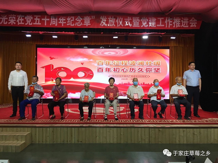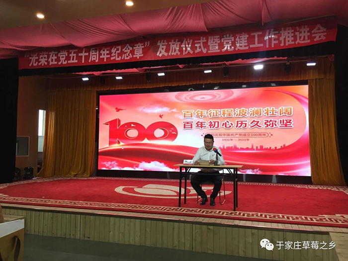 薪火相傳守初心,接續(xù)奮斗新征程。為慶祝中國共產(chǎn)黨成立100周年,推進(jìn)黨史學(xué)習(xí)教育走深走實(shí),進(jìn)一步增強(qiáng)廣大黨員的榮譽(yù)感、歸屬感和使命感,激發(fā)廣大黨員愛崗敬業(yè)、奮發(fā)有為的工作熱情,6月29日上午,于家莊鎮(zhèn)“光榮在黨50年紀(jì)念章”發(fā)放儀式暨黨建工作推進(jìn)會(huì)于保定市冠香居食品有限公司3樓“馨冠文化藝術(shù)館”隆重舉行。