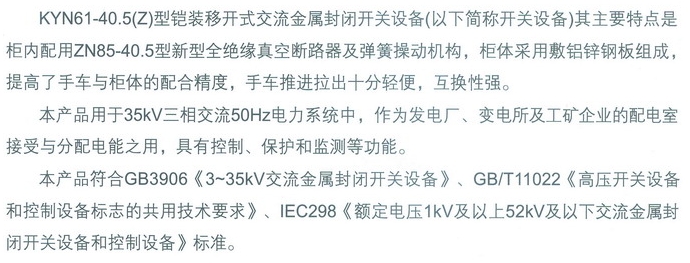 KYN61-40.5(Z)型鎧裝移開式交流金屬封閉開關(guān)設(shè)備