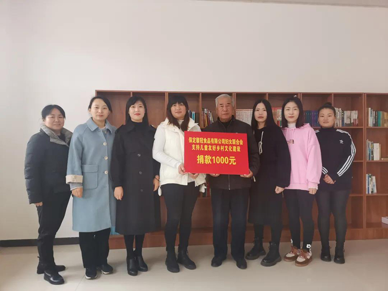 滿城區(qū)婦聯(lián)倡導(dǎo)愛(ài)心企業(yè)支持兒童友好鄉(xiāng)村文化建設(shè)。2021年11月19日,保定馨冠食品有限公司婦女聯(lián)合會(huì)在世界兒童日之際,到滿城區(qū)神星鎮(zhèn)魏莊村捐助“公益書(shū)屋”現(xiàn)金1000元,為孩子們送去了冬日里最溫暖的禮物。